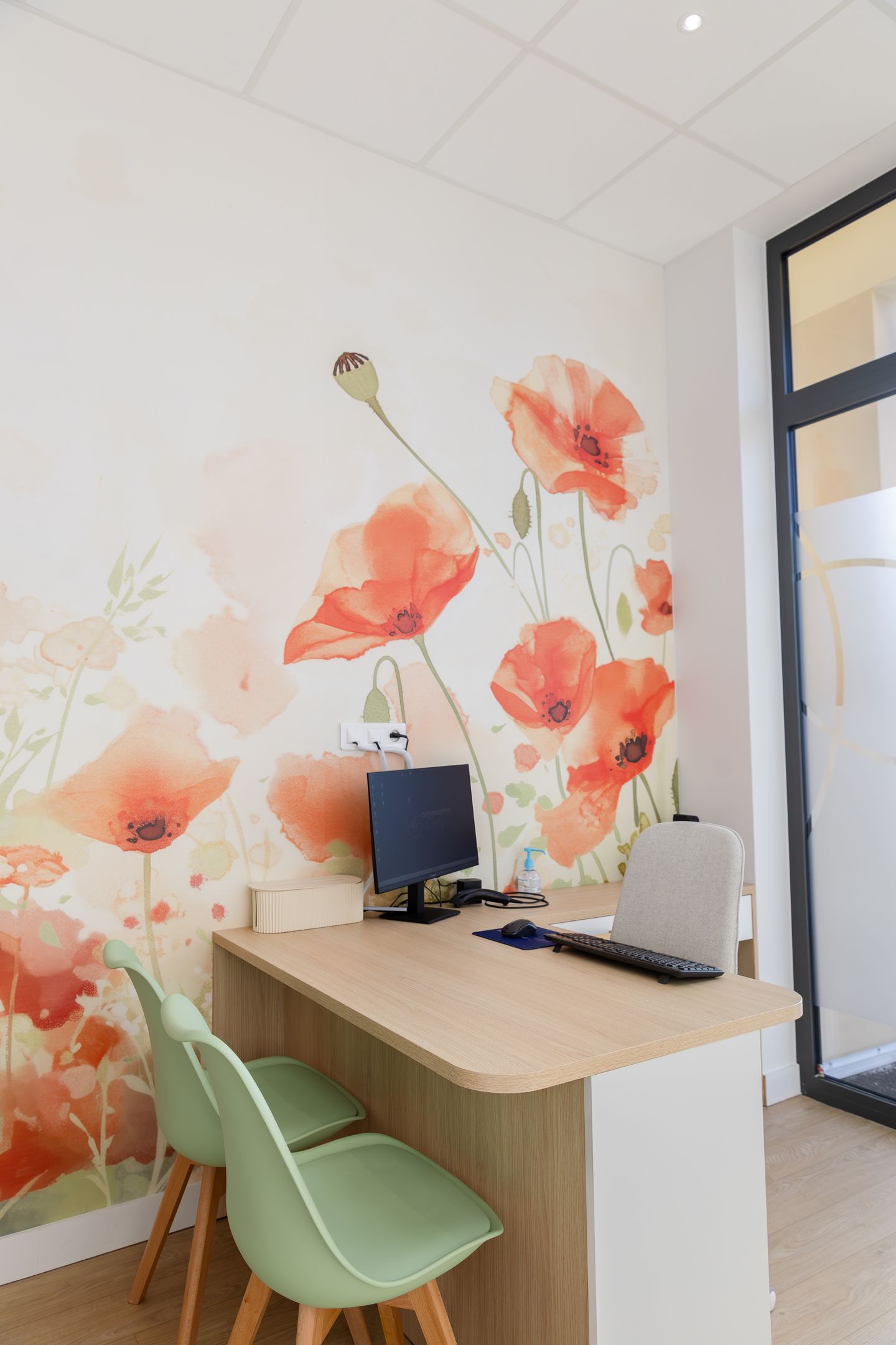 Une attention particulière est portée à l’attente, avec un espace aménagé pour les enfants.